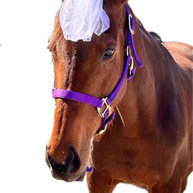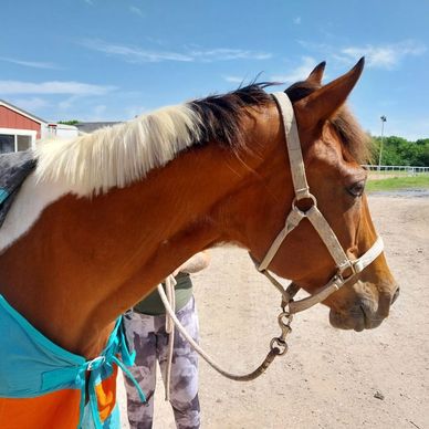 I'm Crimson, the one-eyed horse. I had two eyes when I came to GoldStar, but had a bad infection in my eye. My vet and the GoldStar staff did the best they could for me. I do very well with only one eye.